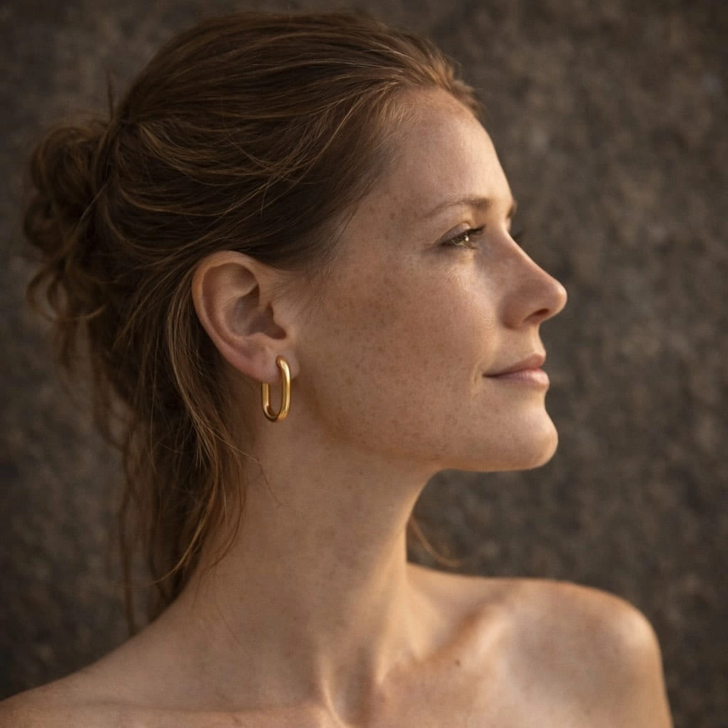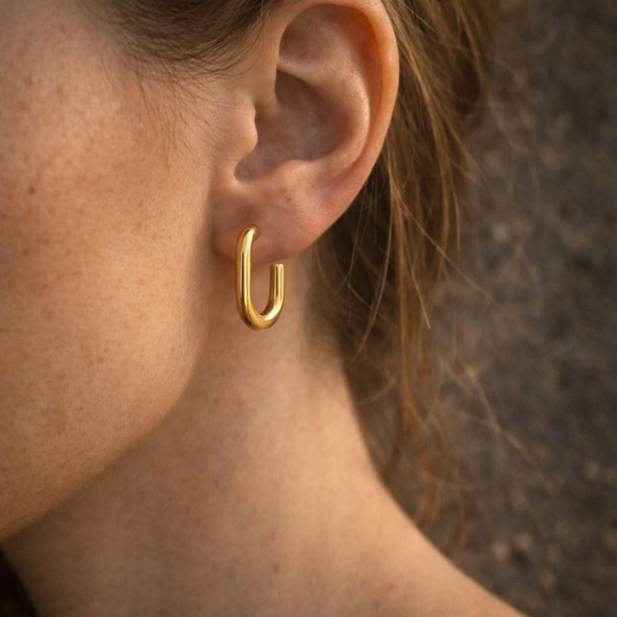 Te eleganckie, owalne kolczyki to klasyka, która pasuje do wszystkiego – od formalnych stylizacji po codzienny look. Subtelne, ale z klasą, świetnie podkreślą Twój styl bez zbędnego przepychu.