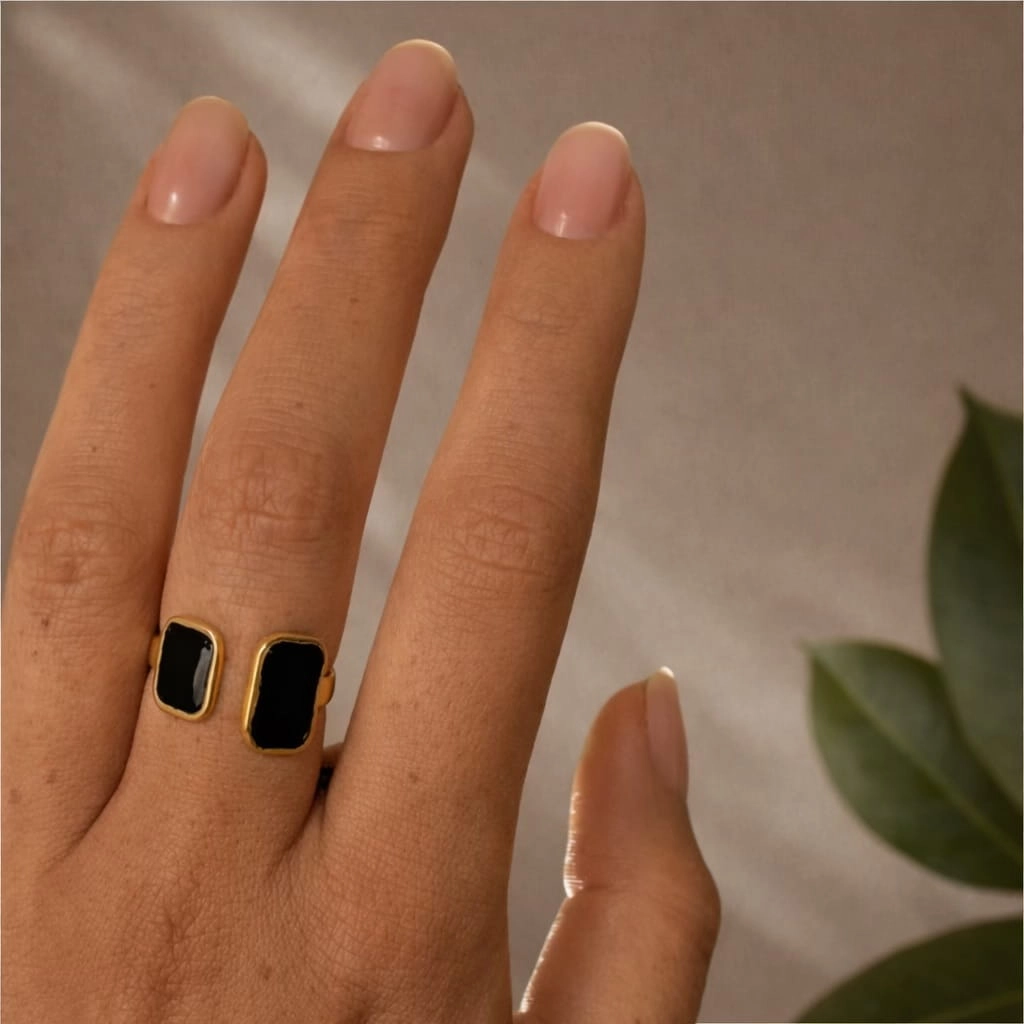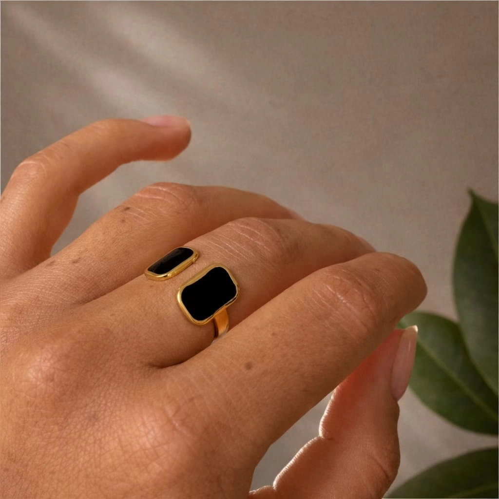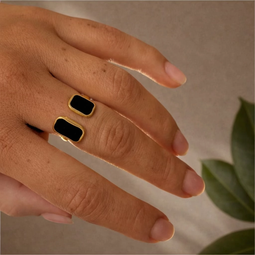 Otwarta konstrukcja sprawia, że pierścionek jest regulowany i łatwy do dopasowania. Możesz nosić go na różnych palcach, w zależności od stylizacji. Podwójny akcent nadaje mu charakteru, a jednocześnie zachowuje lekkość.
