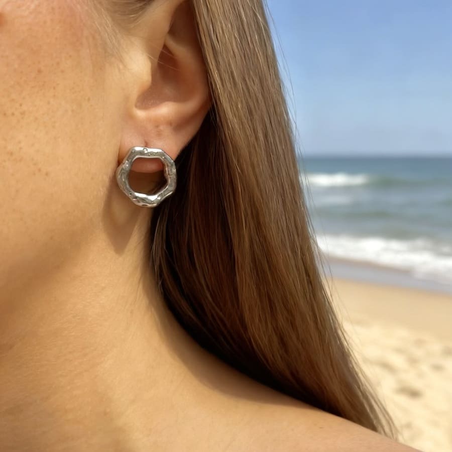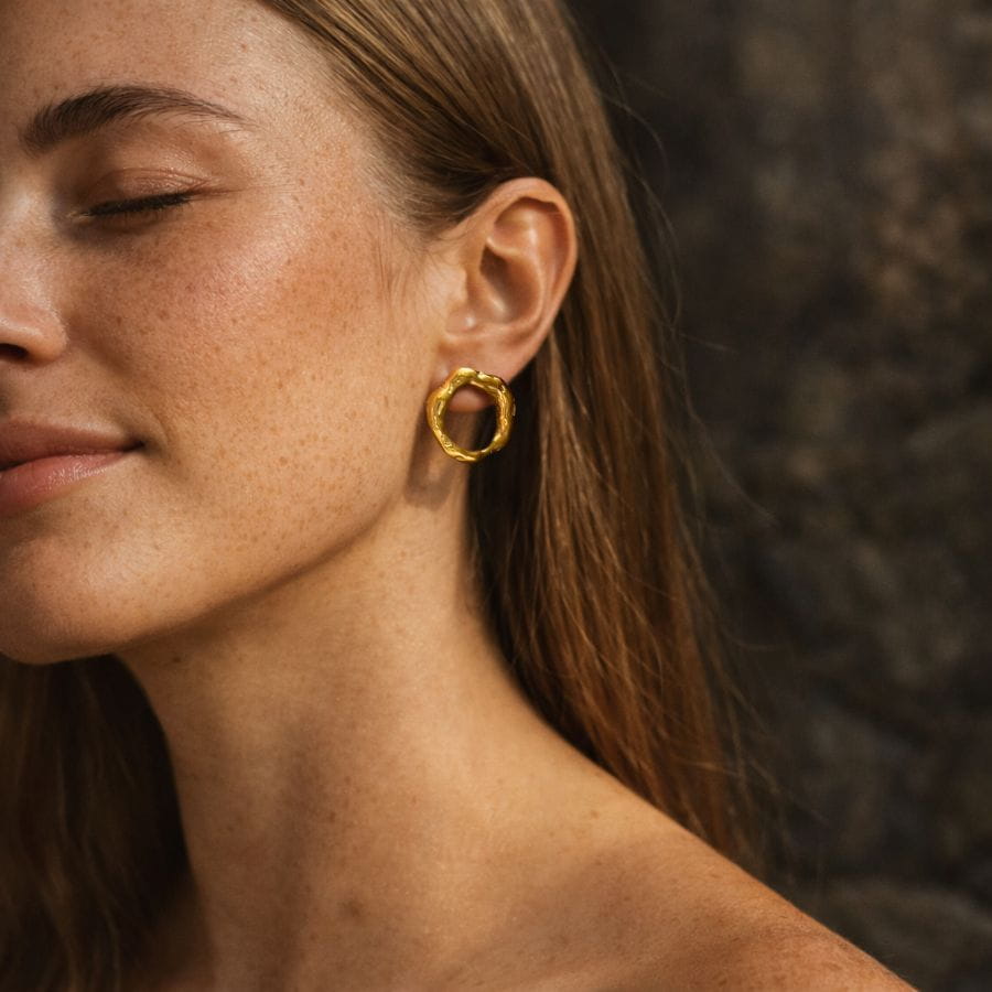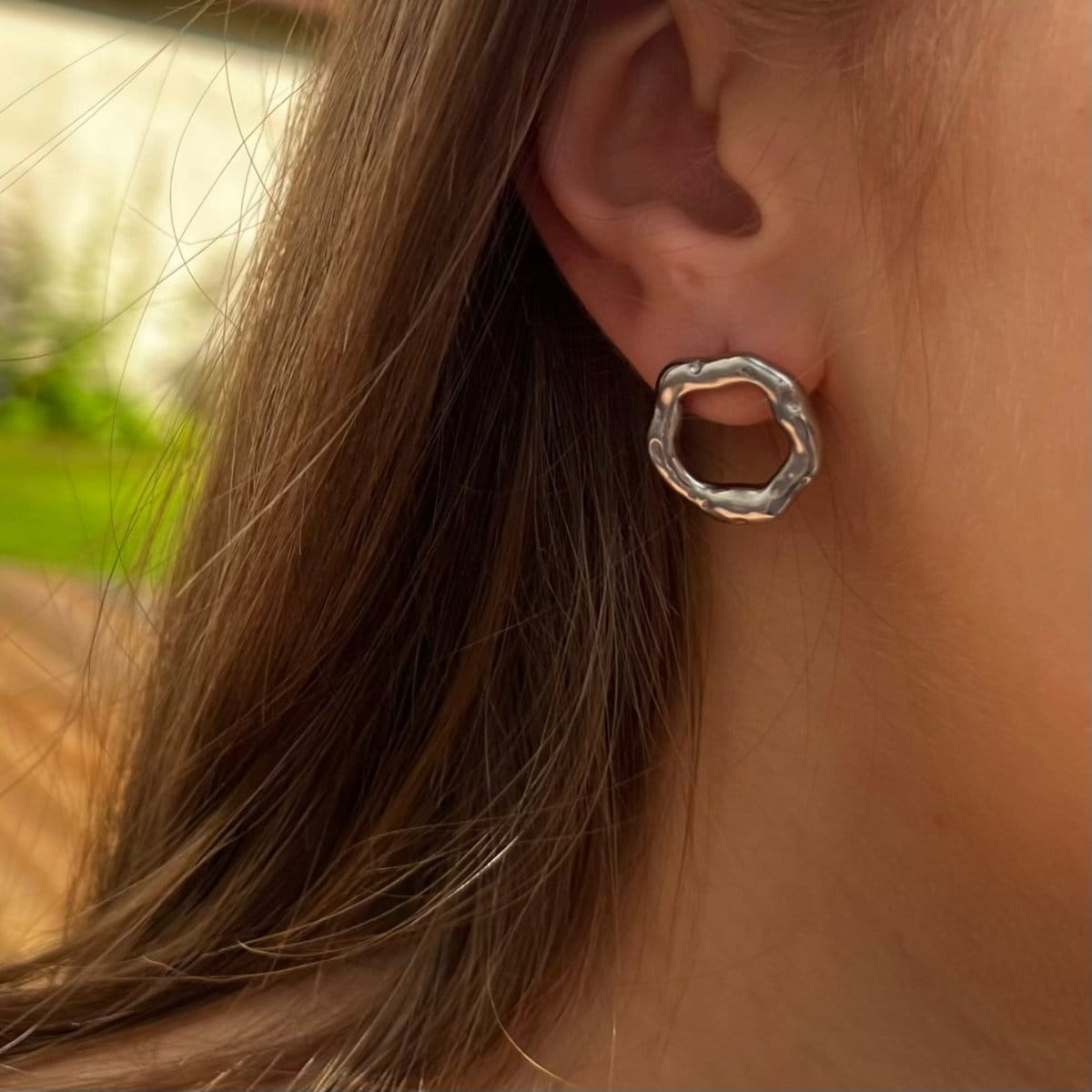 Te urocze nieregularne kolczyki kółka dodają wyjątkowego uroku każdej stylizacji. Mają fakturę pofałdowanej oponki ze zdobieniami, co nadaje im unikalny i kosmicznie elegancki wygląd.