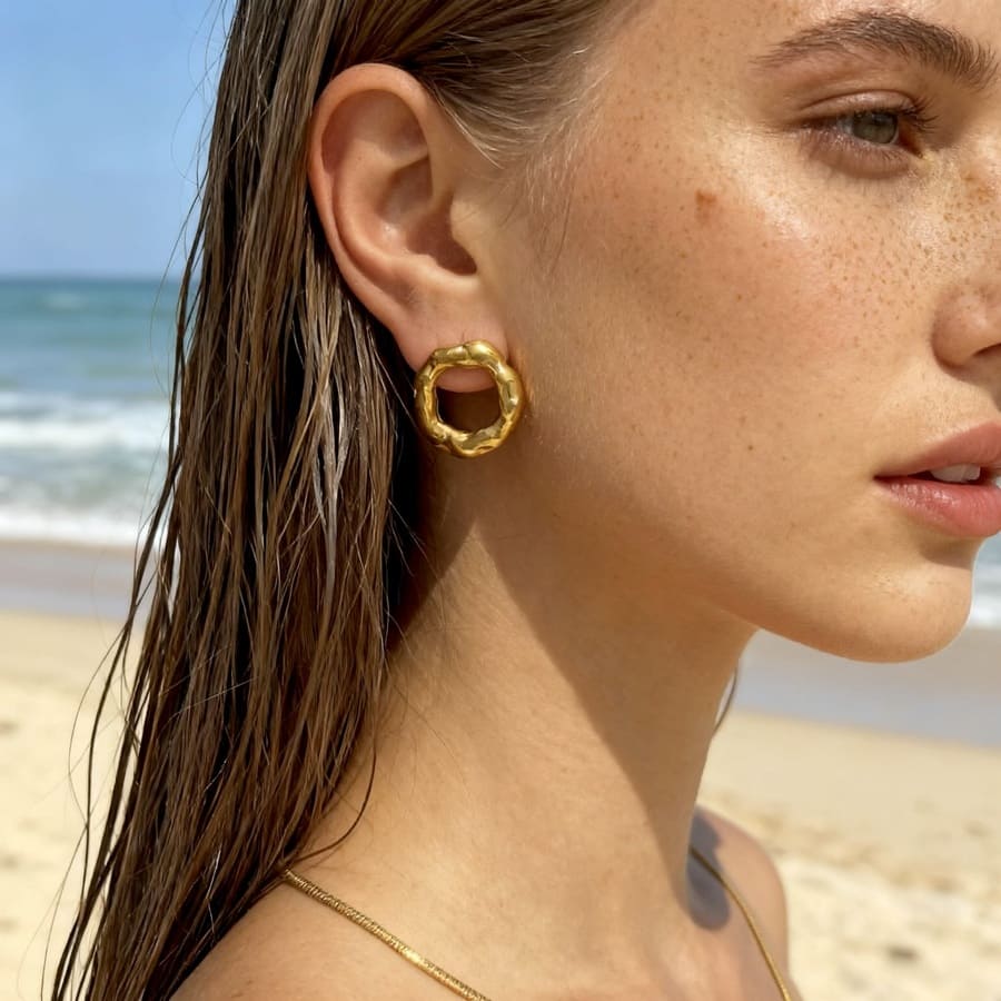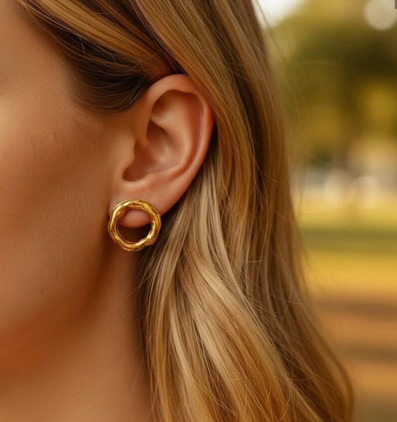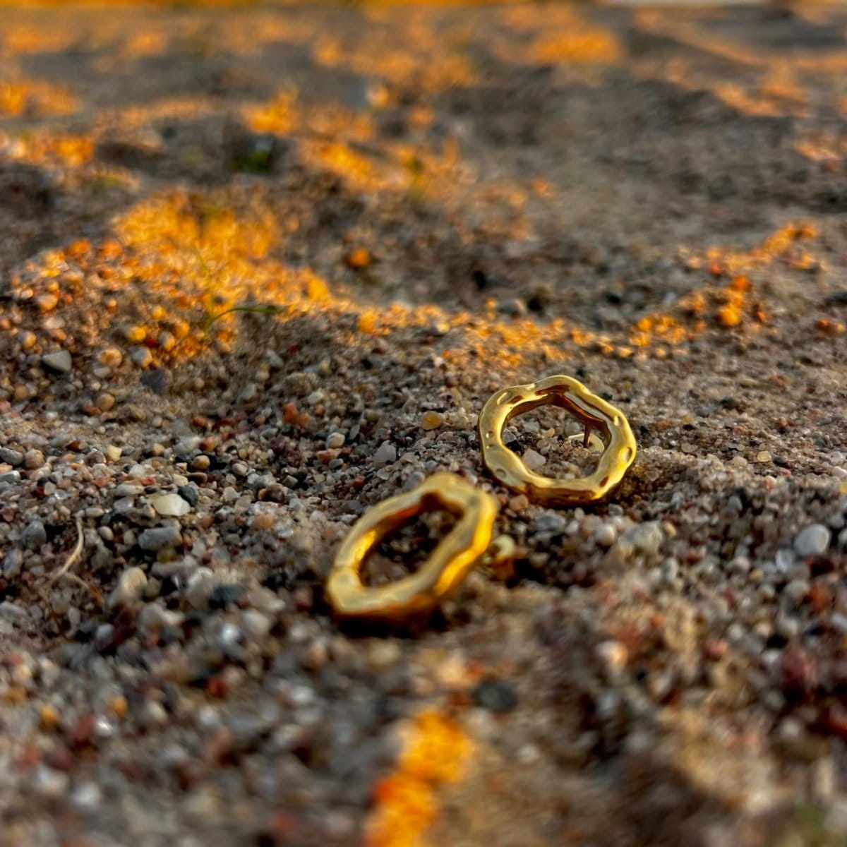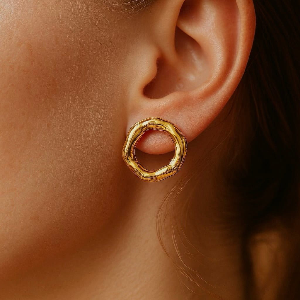 Te urocze nieregularne kolczyki kółka dodają wyjątkowego uroku każdej stylizacji. Mają fakturę pofałdowanej oponki ze zdobieniami, co nadaje im unikalny i kosmicznie elegancki wygląd.