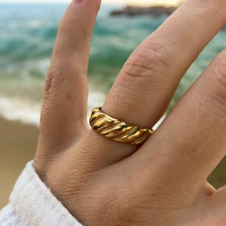 Cocoro: regulowany złoty pierścionek ze stali szlachetnej - Pearlippines Biżuteria