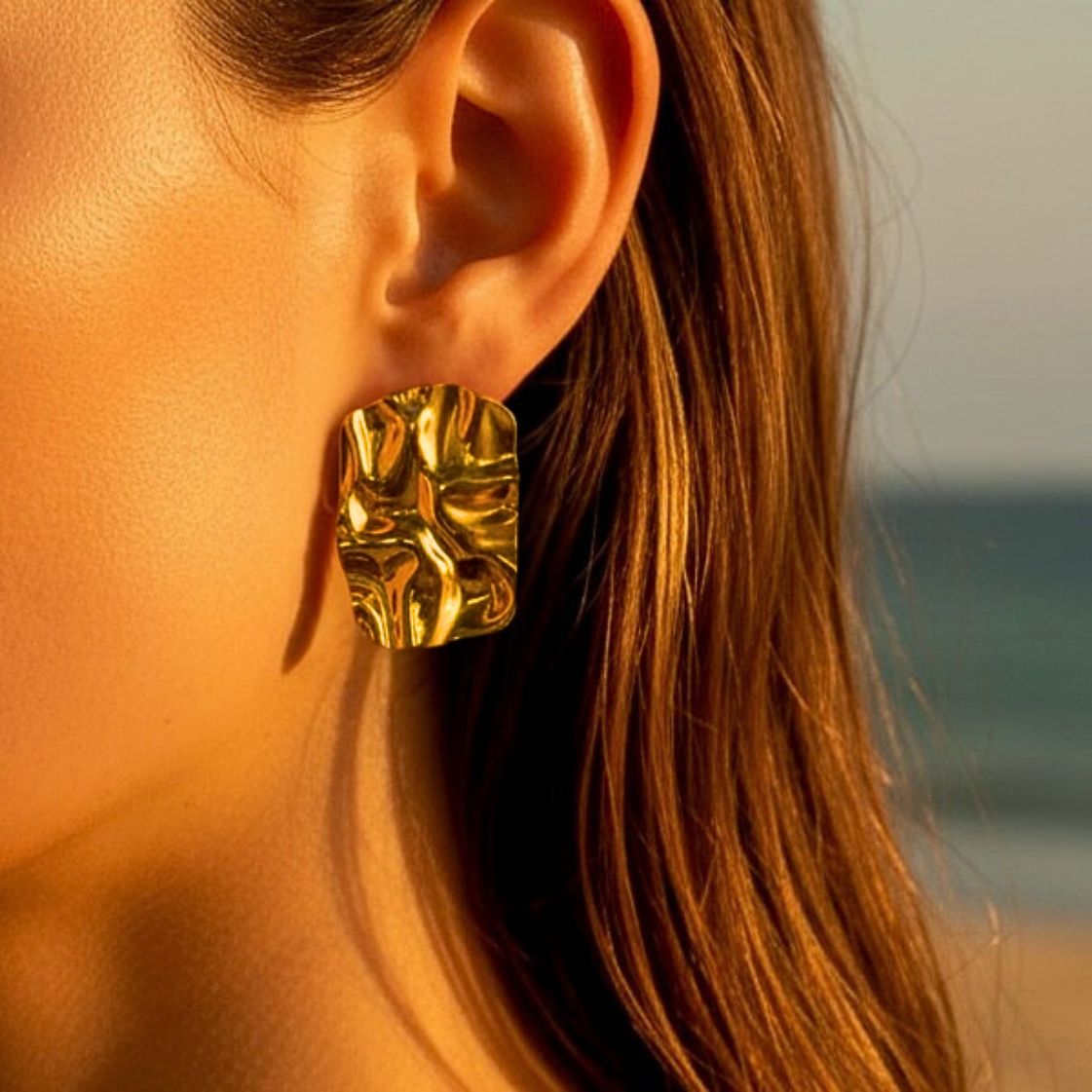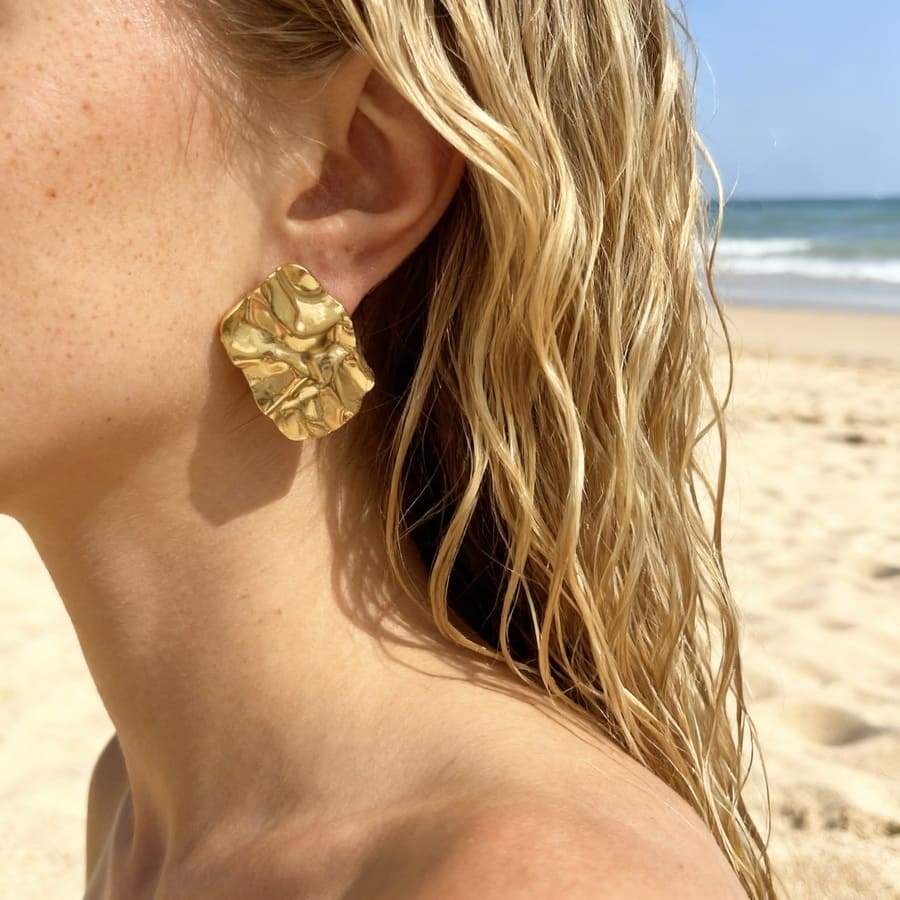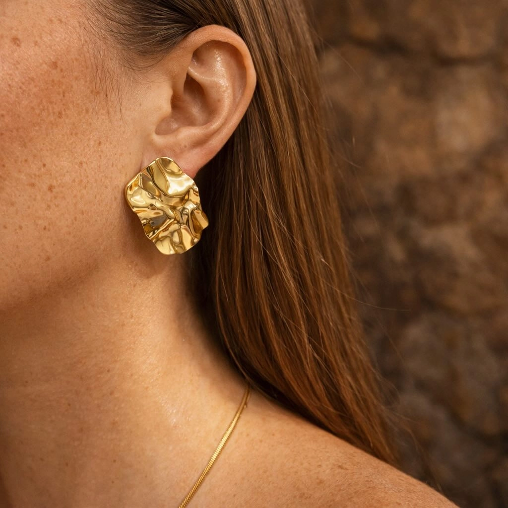 Kolczyki nieregularne prostokąty o unikalnej teksturze przypominającej pofałdowany materiał.