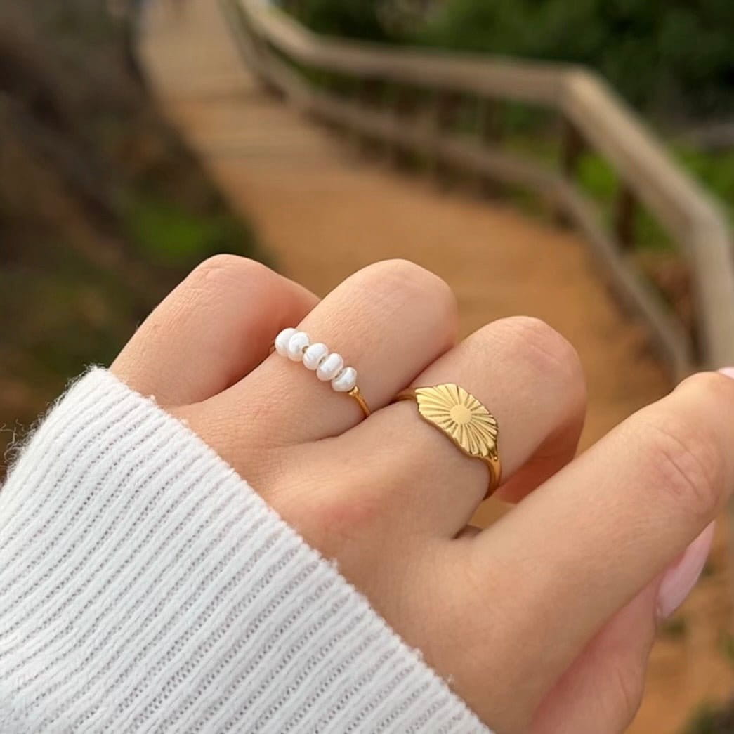 Regulowana obrączka pozwala łatwo dopasować pierścionek do palca, zapewniając komfort noszenia przez cały dzień. Emmit świetnie sprawdzi się noszony solo jako mocniejszy akcent lub w połączeniu z delikatniejszą biżuterią Pearlippines.