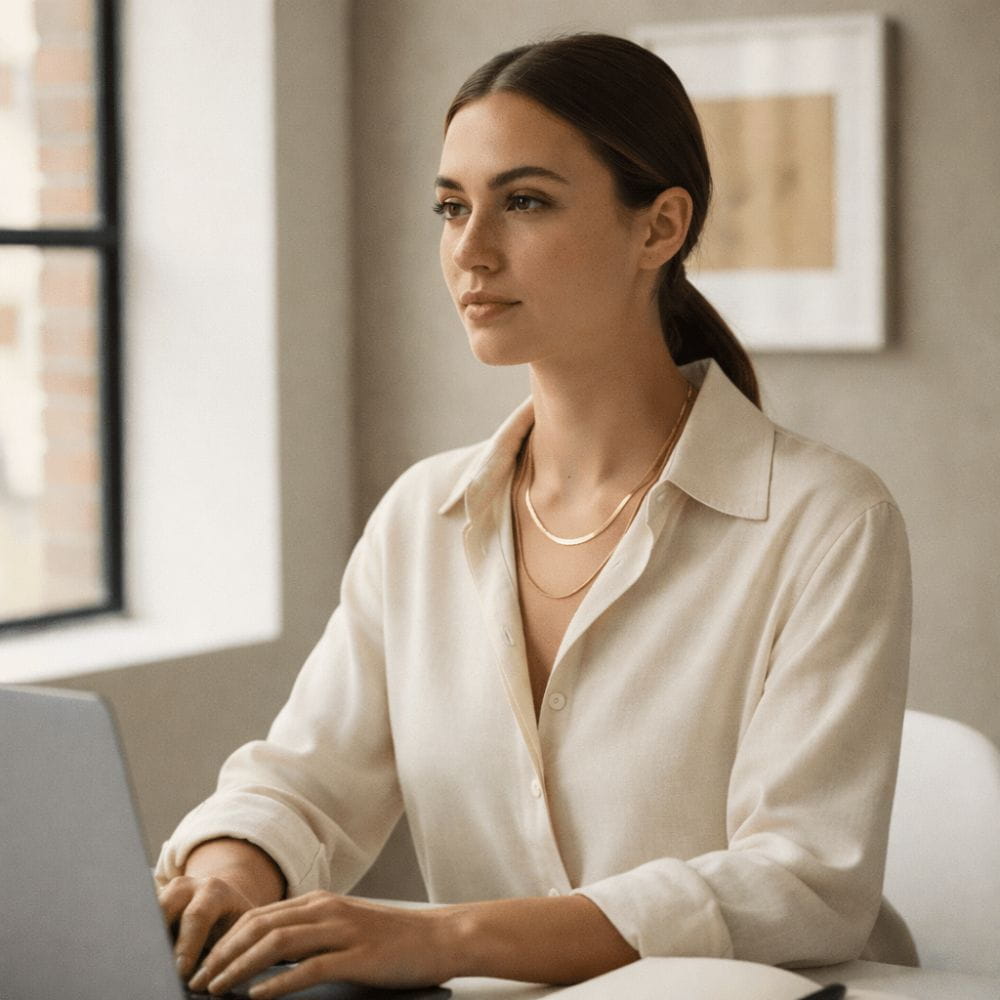 Dobrze wygląda do minimalistycznego topu, lnianej koszuli, wieczornej sukienki. Podkreśla linię obojczyków i naturalnie odbija światło, szczególnie w ciepłym, letnim świetle.