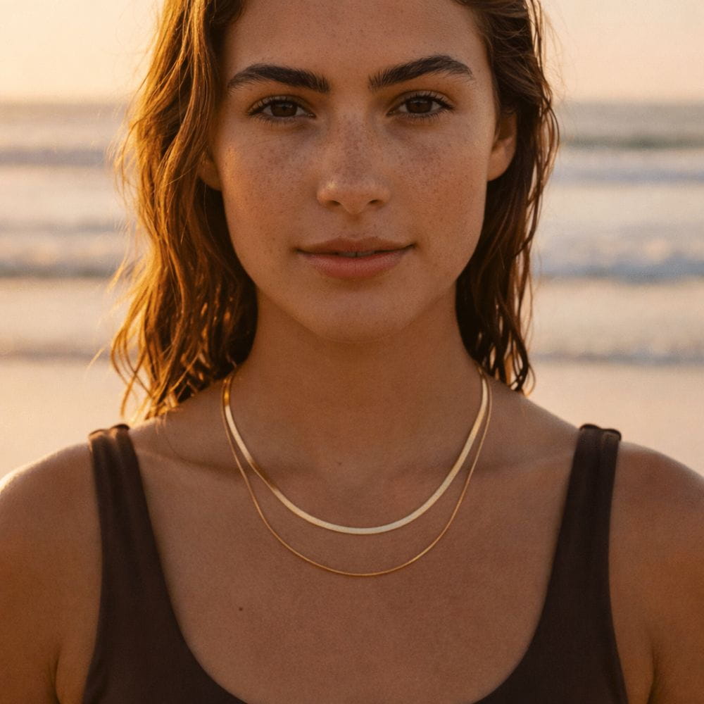 Odkryj elegancję i subtelność z naszym podwójnym naszyjnikiem Golden Duo.