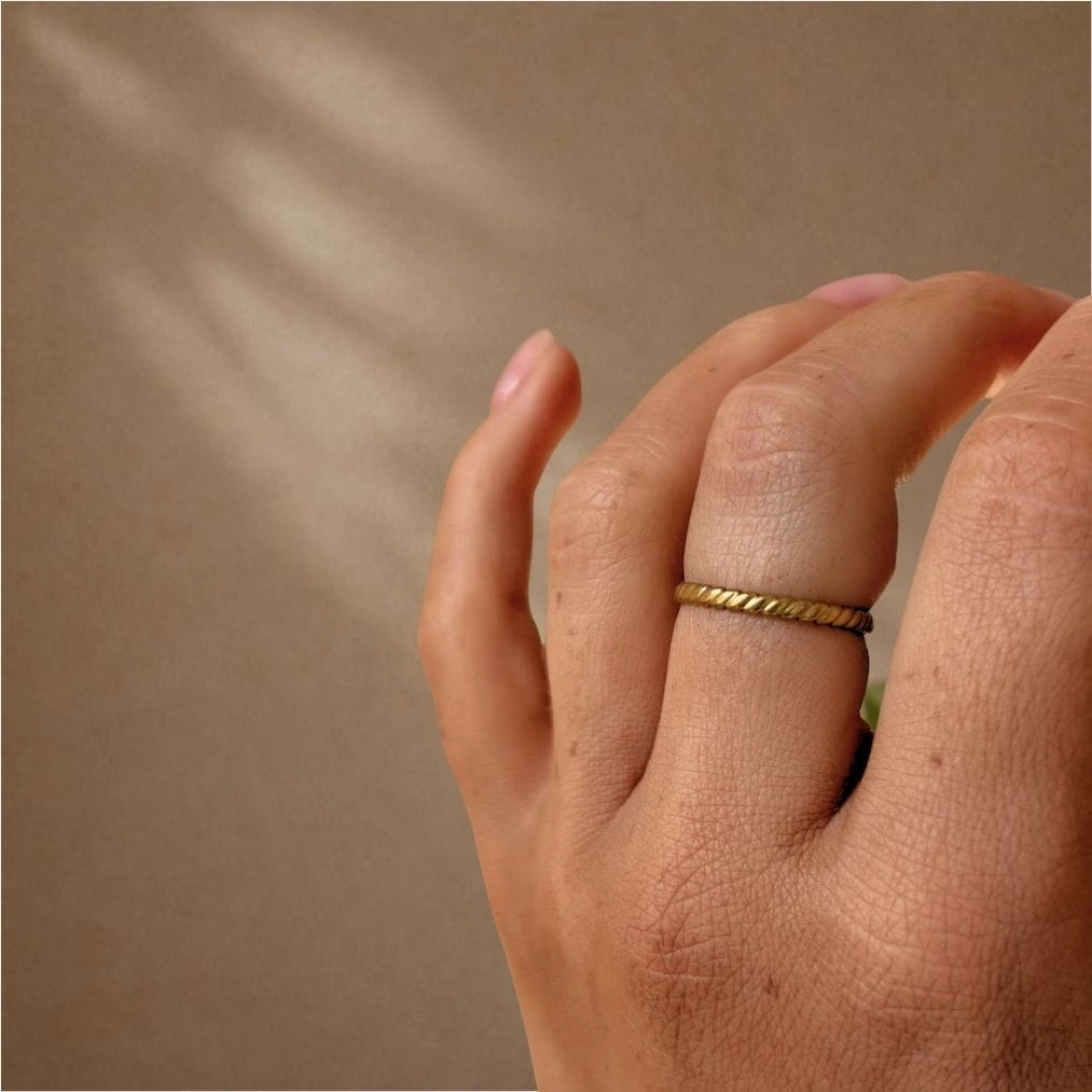 Ozdobny cienki regulowany pierścionek obrączka to idealny dodatek do Twojej kolekcji biżuterii.