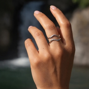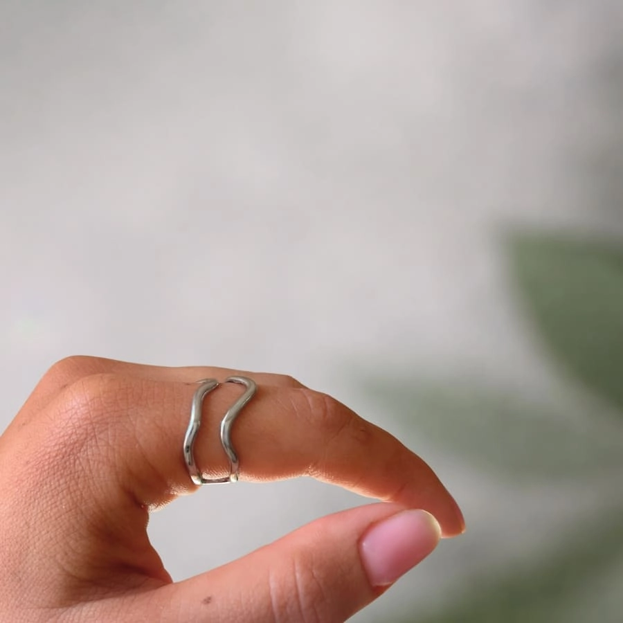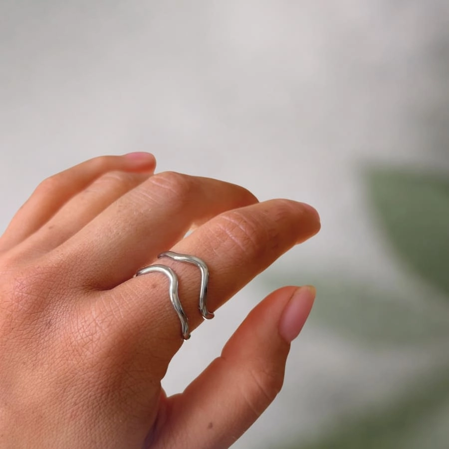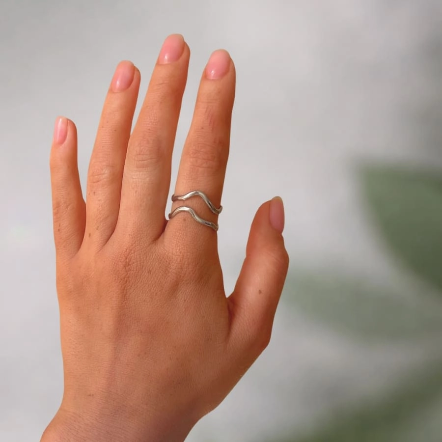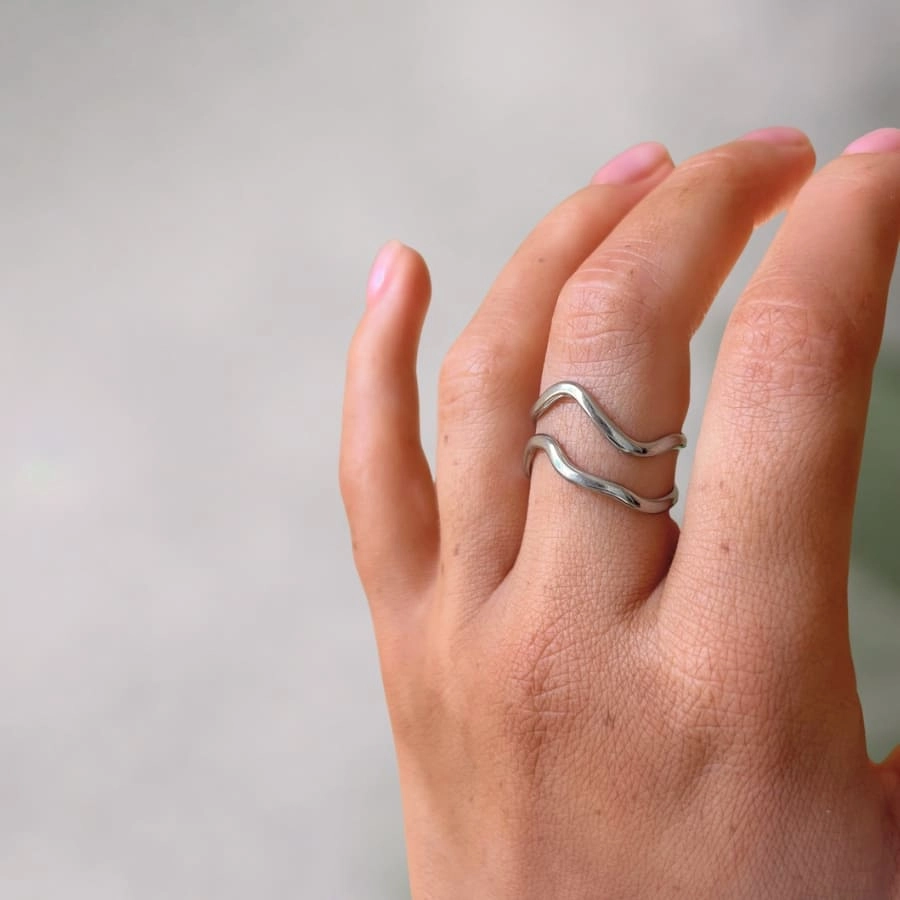 Wave Duo to delikatna, podwójna forma inspirowana ruchem fali. Dwie cienkie, falujące linie układają się równolegle, tworząc lekki i nowoczesny akcent. Minimalistyczna konstrukcja sprawia, że pierścionek wygląda subtelnie, ale przyciąga uwagę swoją formą.