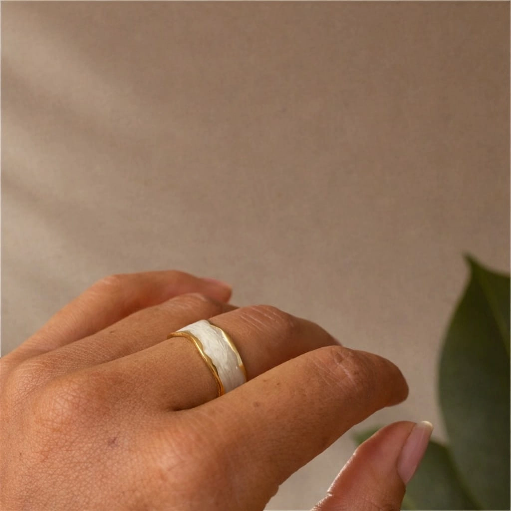 White Pearl to pierścionek, który łączy naturalną subtelność z nowoczesną formą.